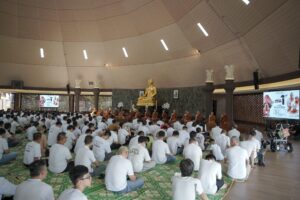 Suasana semakin menenangkan saat para Bhikkhu memimpin doa dan pemberkahan. Lantunan doa yang sarat makna menghadirkan energi kebajikan serta kedamaian batin, tidak hanya bagi umat Buddha, tetapi juga bagi seluruh tamu undangan yang turut merasakan kekhusyukan perayaan.